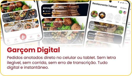 Com a Takeat, você gerencia pedidos, controla estoque, organiza suas finanças, fideliza seus clientes, automatiza processos fiscais e melhora o atendimento ao cliente de forma prática e eficiente. Nosso sistema é completo e você não precisa de nenhum outro.
